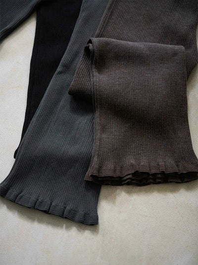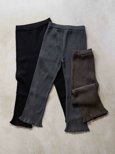 毎年ご好評をいただいているCloth&Crossのリブニットパンツに、今シーズンは控えめなフリルをあしらい、ほどよい華やかさを添えました。