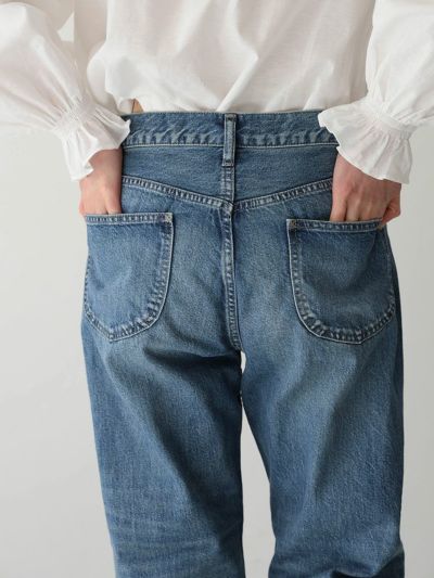 丈夫なボタンフライは、穿き込むうちにアタリがついて、ジッパーとはまた違った豊かな表情を見せてくれます。