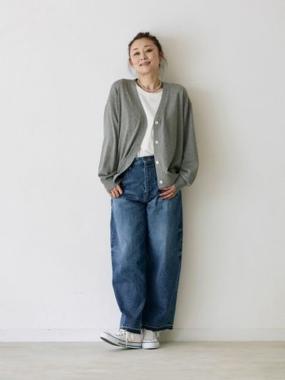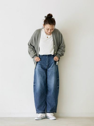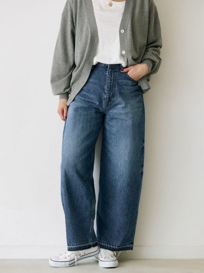 シーズンレスに活躍する程よい厚みのデニムパンツは、緩やかなカーブを描くレッグラインに。