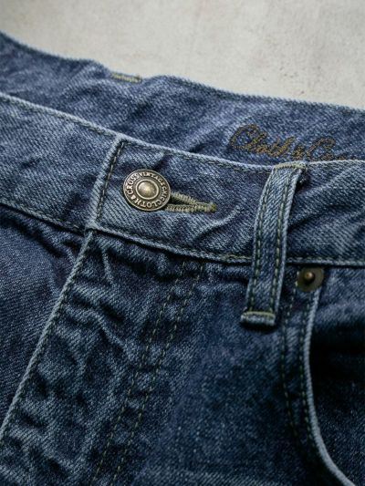 ブランドのロゴが入ったウエストのボタンや、内側のチェーンステッチで、特別感を演出した穿き心地のよい一着です。
