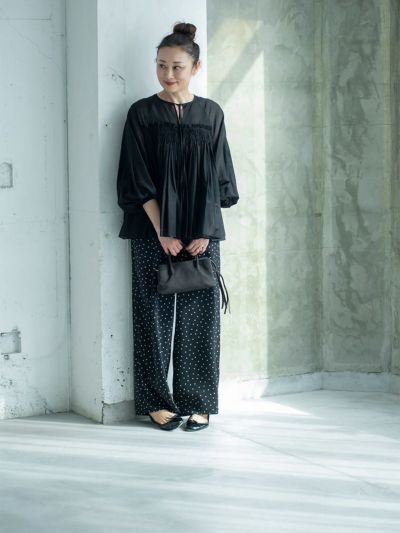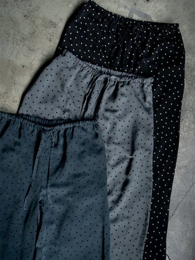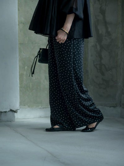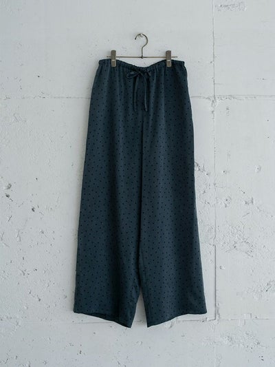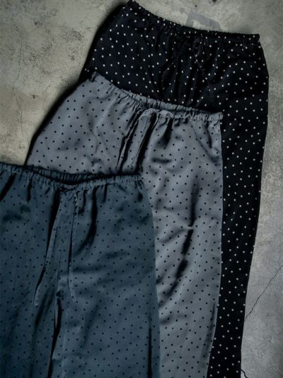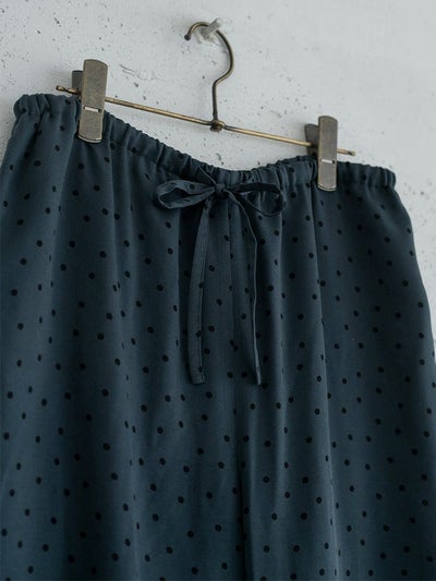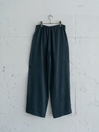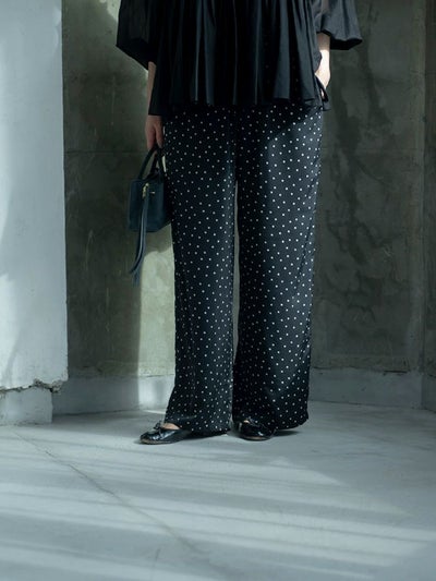小粒なドットがコーディネートのアクセントになる、総ゴムウエストのイージーパンツ。