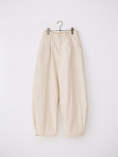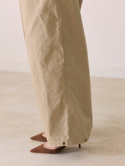 バックウエストにはゴムを入れ、腰まわりに程よいゆとりを持たせたリラックス感のあるシルエットに。