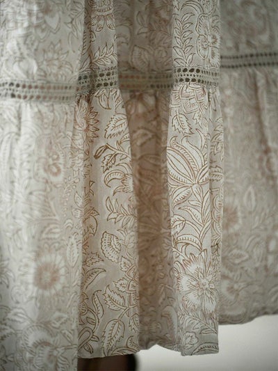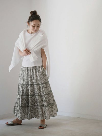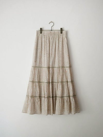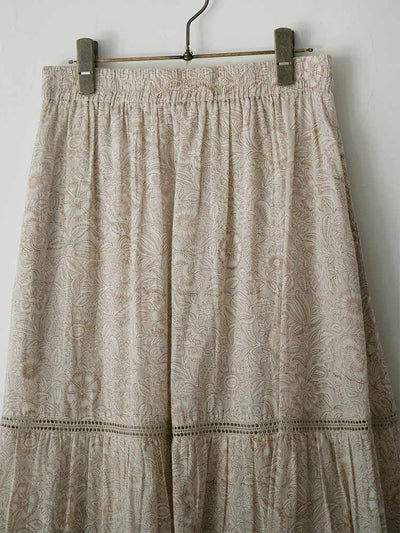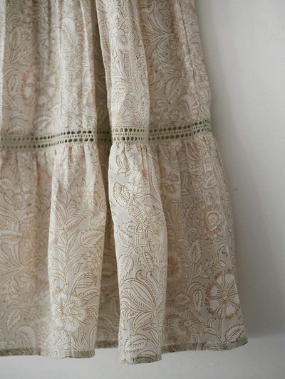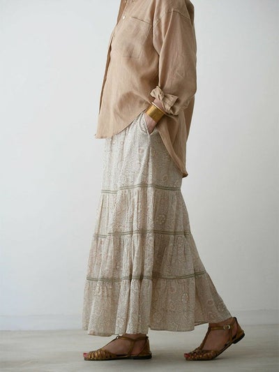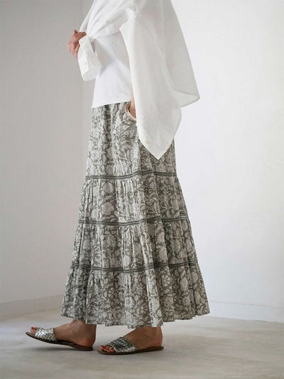 伝統あるインドのブロックプリントを施した、コットンボイルのティアードスカート。