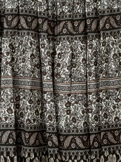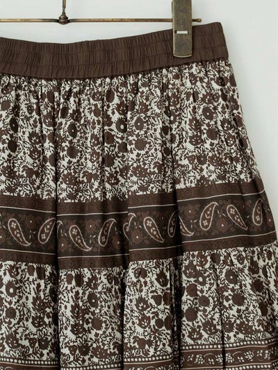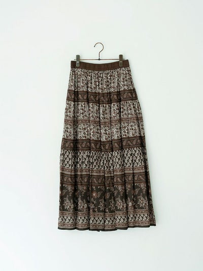 繊細な花柄やペイズリー、唐草模様など、いくつものモチーフを緻密に組み合わせたオリジナルプリントのスカート。