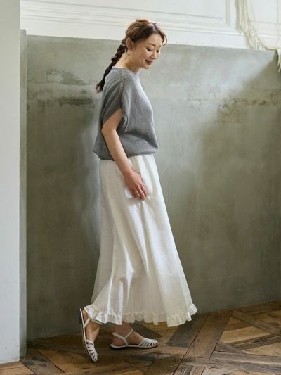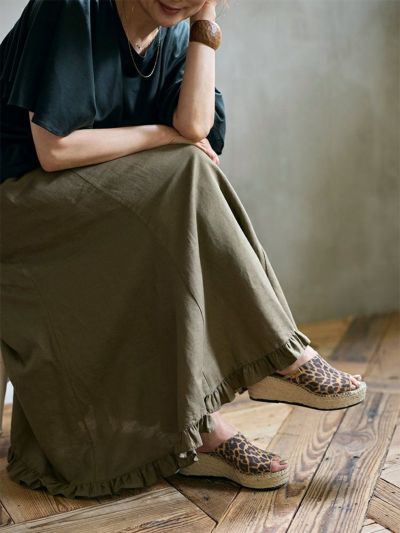 ナチュラルな風合いとフェミニンなディテールが調和した、リネンコットンのフリルヘムスカート。