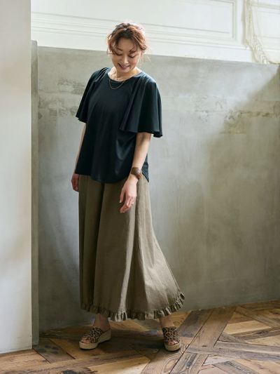 シンプルなデザインも足元のフリル使いで大人のかわいらしさをプラスした、ワードローブに取り入れやすいアイテムです。