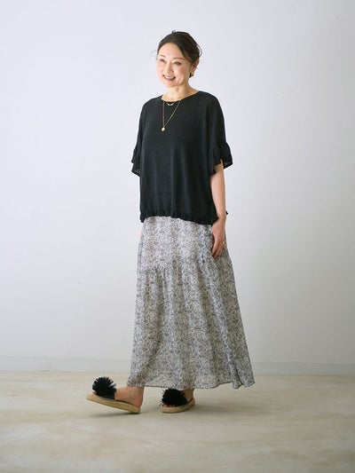 シボ感のある軽やかな生地が、エレガントにゆらめいて優雅なシルエットを演出。