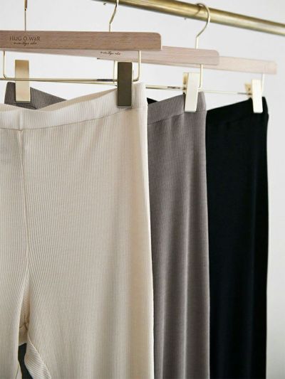 一度穿いたらやみつきになる、滑らかなレーヨンシルク素材のリブ編みレギンス。