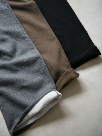 カジュアル過ぎないクリーンな印象のスウェット生地は、裏起毛なのであたたかく、心地よい肌触り。