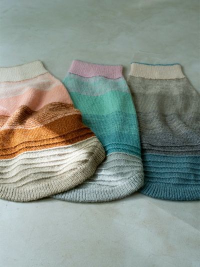 軽やかなウール混素材で柔らかく、凹凸あるボーダー状の編地で裾に変化をつけて、立体感あるデザインに仕上げました。