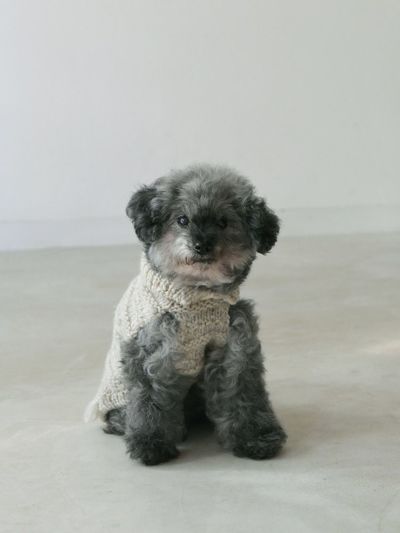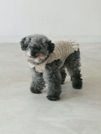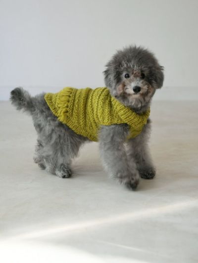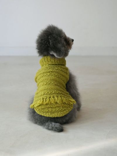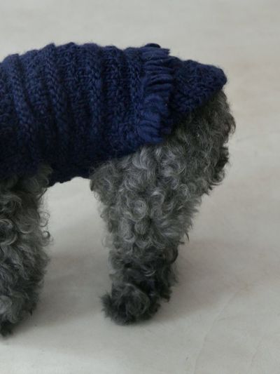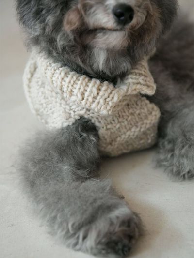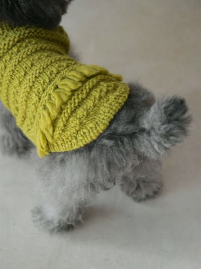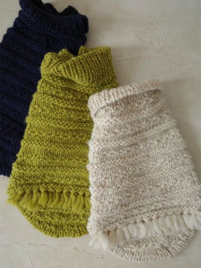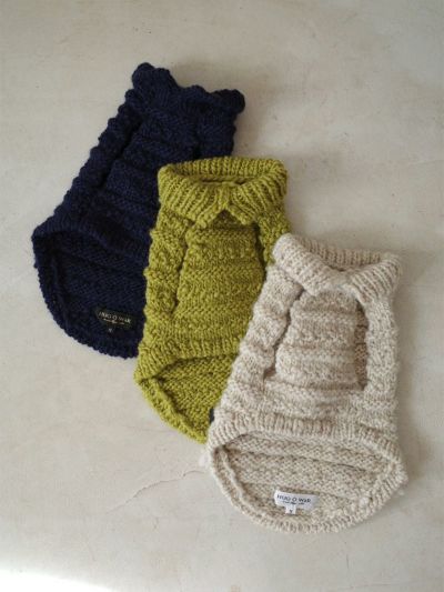 丈夫で吸放湿性に優れた英国羊毛のスラブ糸を使用して、ハンドニットのドッグウェアを作りました。