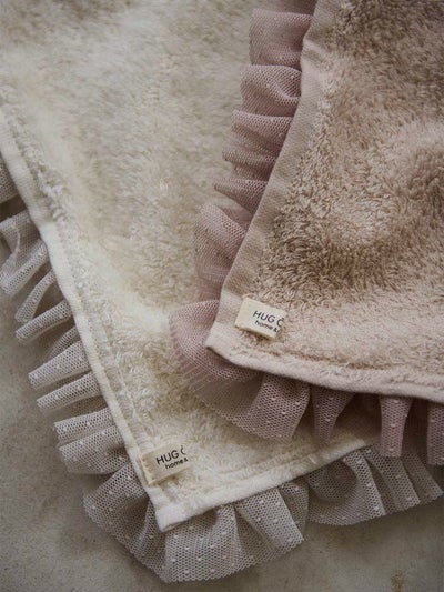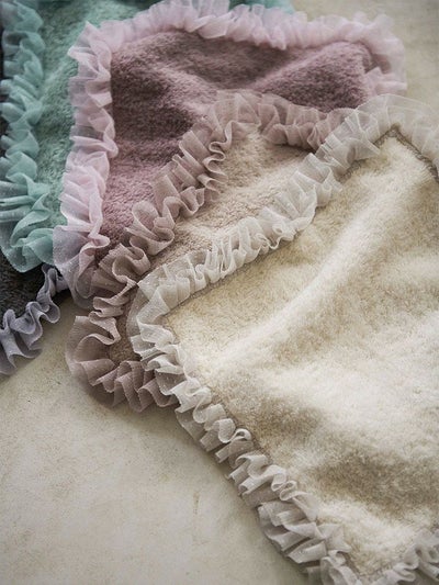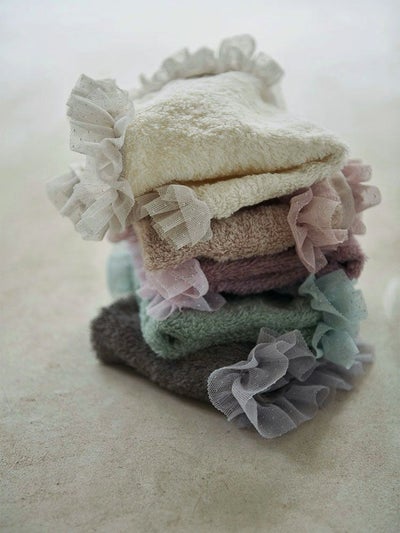 お出かけのおともに、日常をご機嫌にしてくれるチュールフリルのハンドタオル。