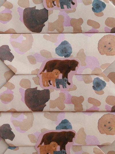 缶には娘のゆららさんが描いた愛犬3匹を凹凸に表現して特別なかたちとなりました。