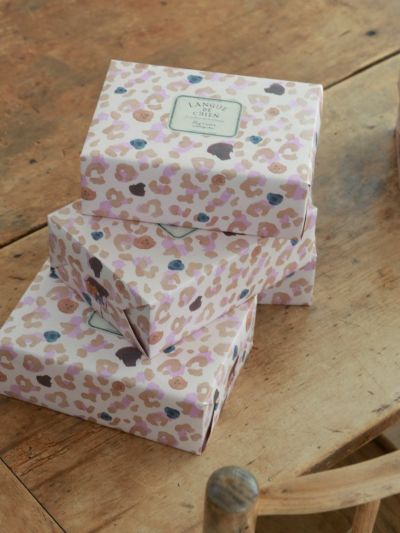 クッキーの形状からフランス語で「猫の舌」の意味「ラングドシャ」と呼ばれていますが、ハグ オー ワーでは缶のモチーフにちなんで、LANGUE DE CHIEN (犬の舌)として新たに登場です。
