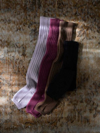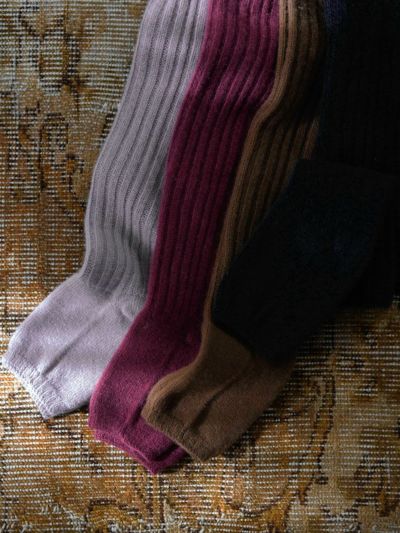 縫い代のないホールガーメントで編み立てた一足は、希少性の高いメリノオプティモウールに、カシミヤをブレンドしたもの。