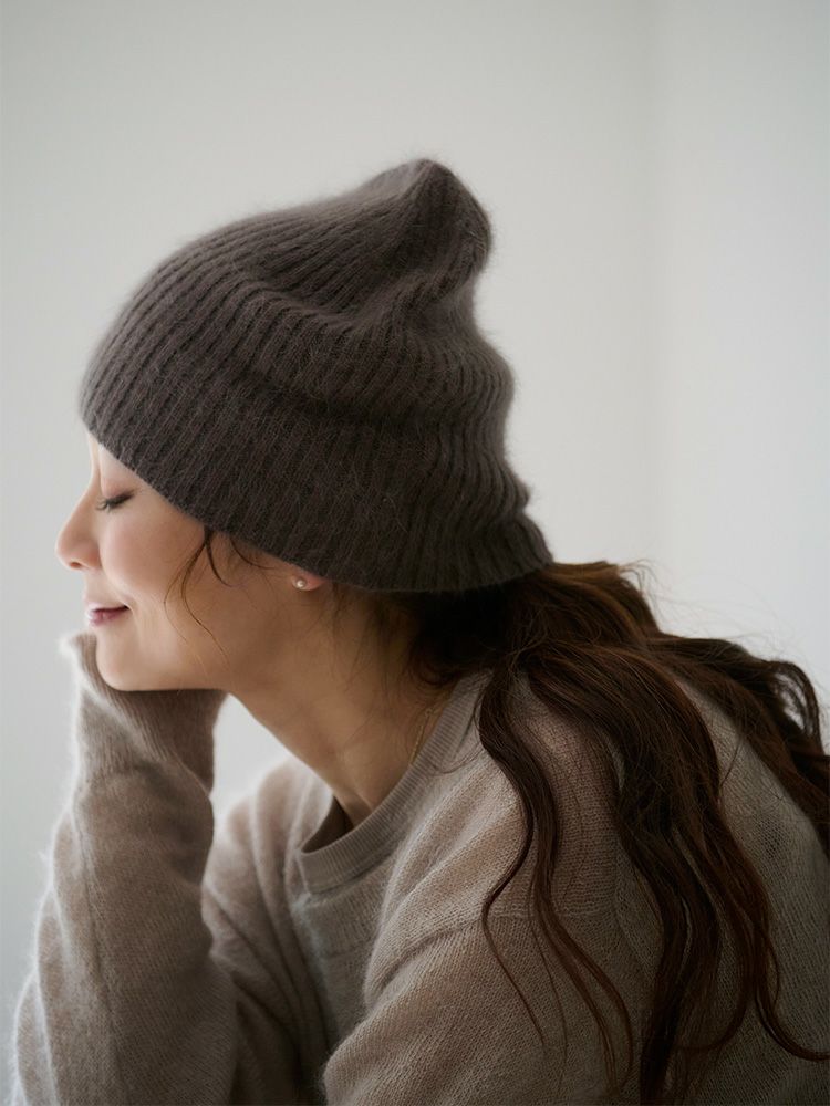 冬の装いにシーズンムードを添える、温もりあるルックスのアンゴラ混ニットキャップ。