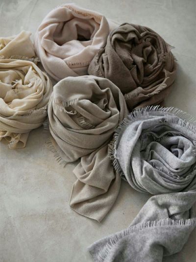 選び抜かれたカシミヤを100%使用して贅沢に編みたてたストールは、仕上げにブラッシングをすることで程よい柔らかさと風合いをプラスしました。
