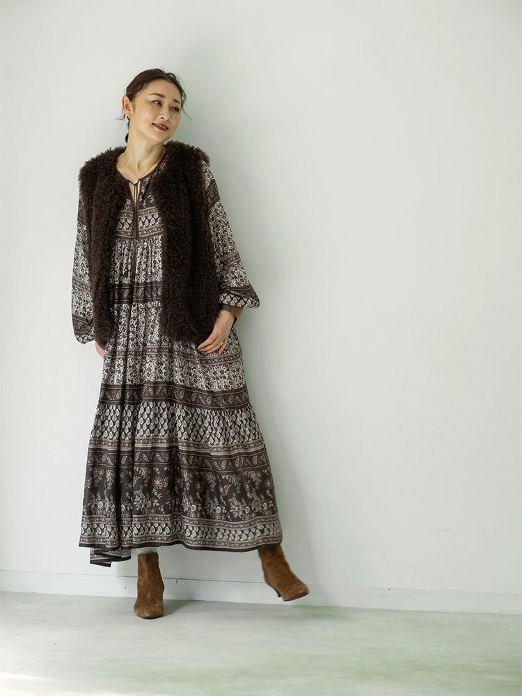 レオパードフラワーpt.ギャザーキャミソールドレス