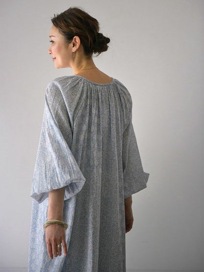 今回のために特別に描き下ろしたオリジナルのパッチワークプリントで、初夏の風を感じるエレガントなワンピースを作りました。