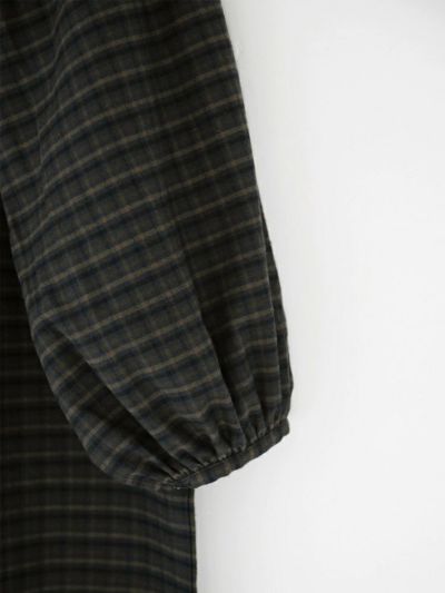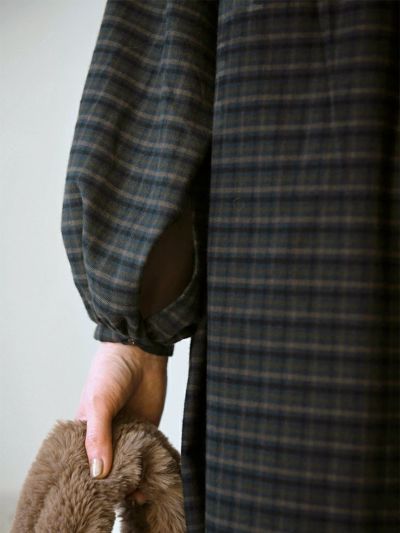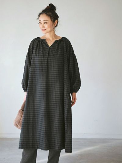 あたたかみあるフランネルの生地を全面に使用した、スモックタイプのチェック柄ワンピース。
