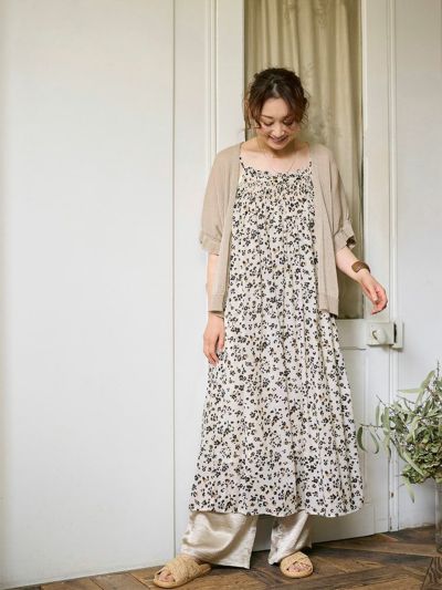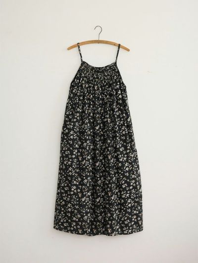 インドならではの軽やかなコットンボイル生地に、オリジナルのフラワープリントを施したキャミソールドレス。