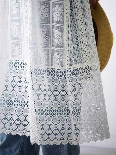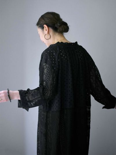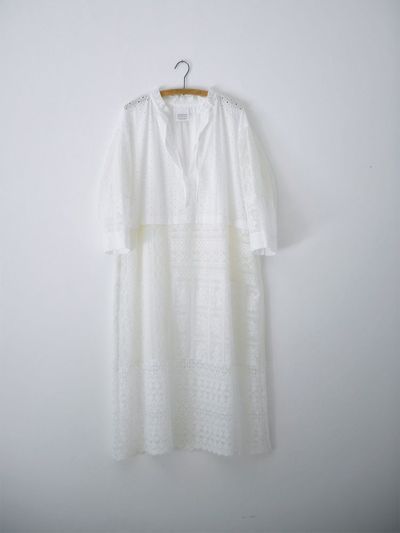 4種類もの異なるレースを使用して、一枚一枚丁寧に接ぎ合せた贅沢なパッチワークワンピース。