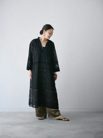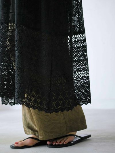 ロング丈でありながら、レースの透け感が軽やかで、レイヤードスタイルが楽しくなる一着です。