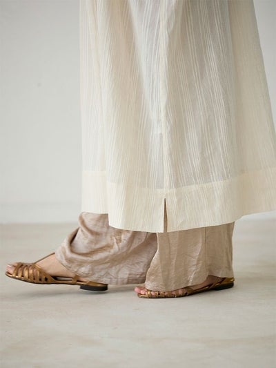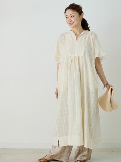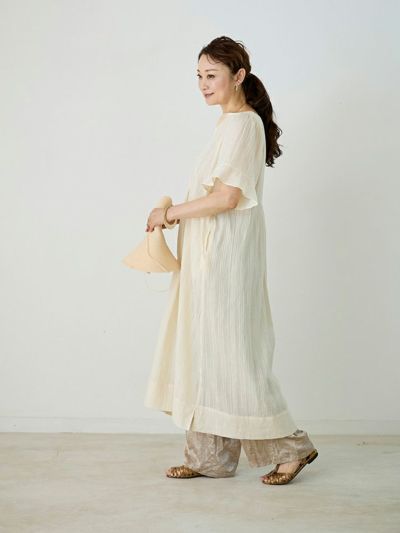 両サイドの裾や胸元のスリットが見た目にも涼やかで、シーズンライクな抜け感を与えてくれます。