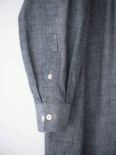 ナチュラルな風合いを生む、ムラ糸を使用したネップ感のあるダンガリー素材のシャツワンピース。