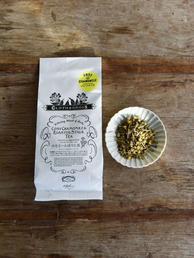 リラックス効果の高いカモミールとノンカフェインの茎ほうじ茶を オリジナルブレンドした「カモミールほうじ茶」。