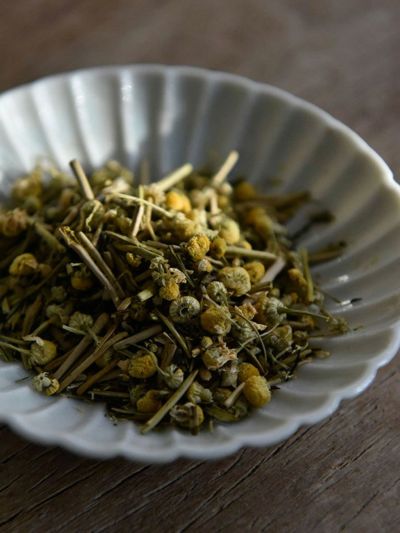 熱いお湯を注ぐと、ふんわり茶葉が広がって、フルーティーなやさしい香りが漂います。一番茶の茎茶を浅炒り焙煎したほうじ茶と、黄色い実が可愛らしいハーブティの定番カモミールのコラボレーション。ハーブを暮らしに取り入れて、穏やかに気分転換したり、気分が落ち着くので、おやすみ前にもオススメです。