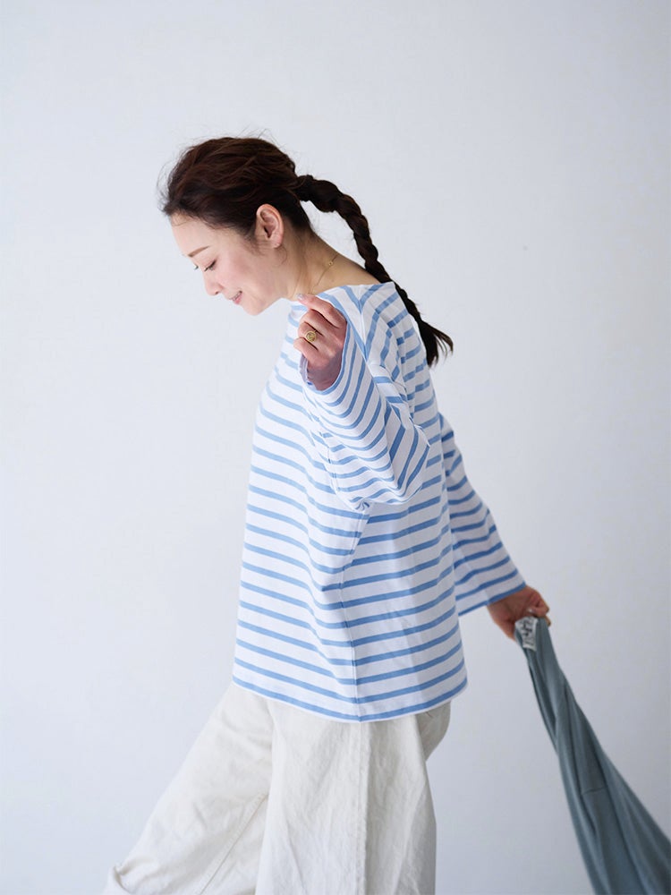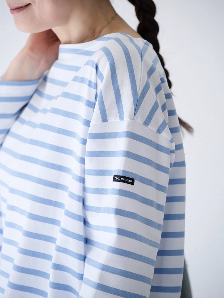 ミックスボーダーボートネックカットソー