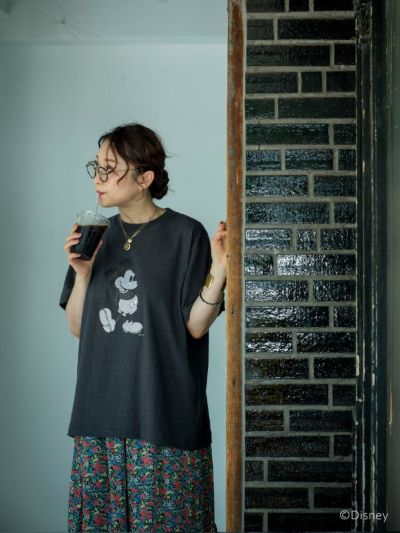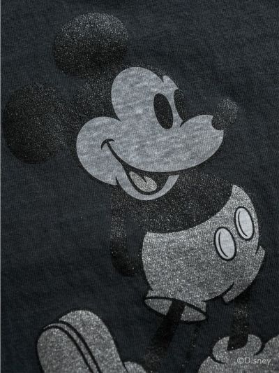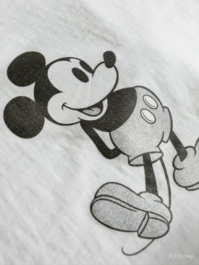 フロントにはクラシックな「ミッキーマウス」のアートワークを、控えめに輝くラメプリントで施しました。