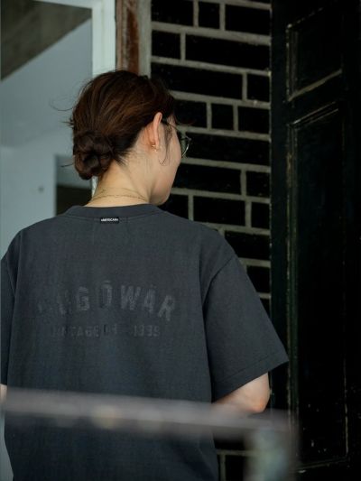 バックスタイルにAmericanaのピスネームとHUG Ō WäRのロゴをプリントした、アクティブな印象の一枚です。
