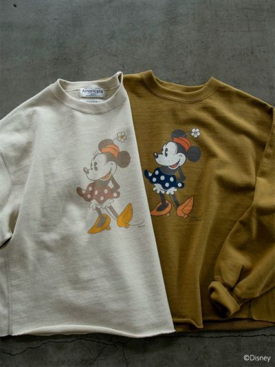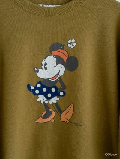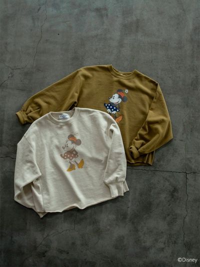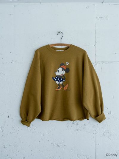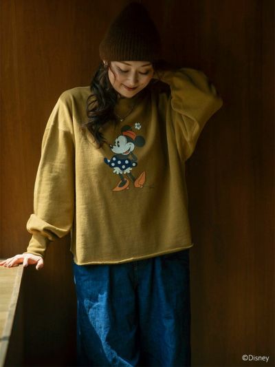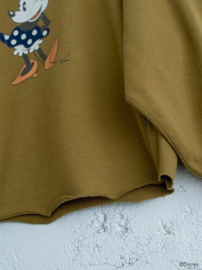 体が泳ぐゆったりとしたサイジングに、カットオフの裾がラフな印象のスウェットには、愛らしい「ミニーマウス」をプリントしました。