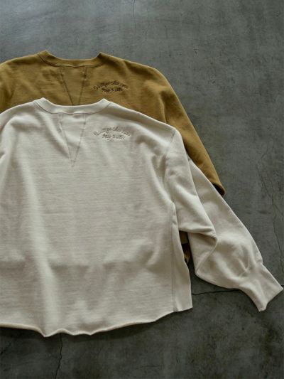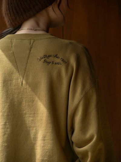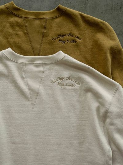 バックスタイルにはヴィンテージのスウェットを模したガゼットや、HUG Ō WäRのチェーンステッチを施して、特別感をプラスしたスペシャルな一着です。