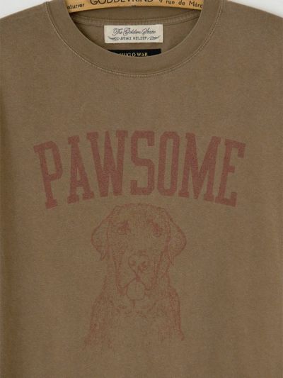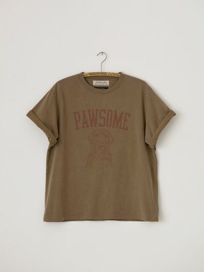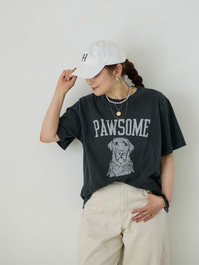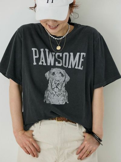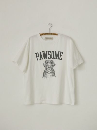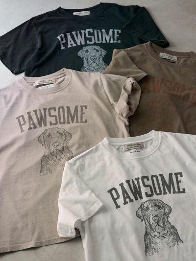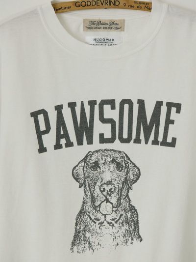 デザイナー雅姫の愛犬、ヴォルスのファニーな表情と、「最高!」や「かわいらしい!」を意味する犬猫用のスラング「PAWSOME」のロゴが、なんともキャッチーな一枚。