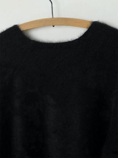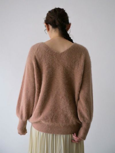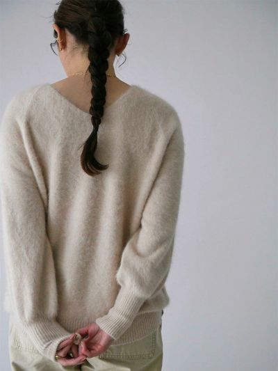 ふんわりと滑らかな毛足の長いフォックスカシミヤの糸で編んだニットは、洗練されたクラス感ある仕上がりに。
