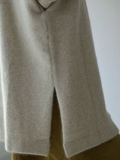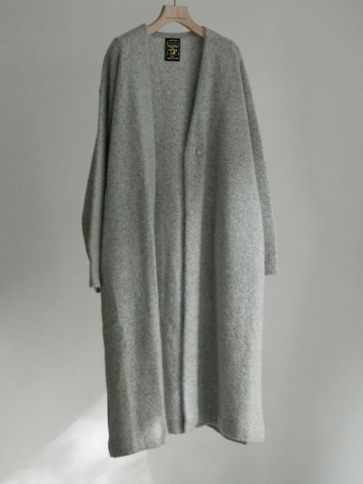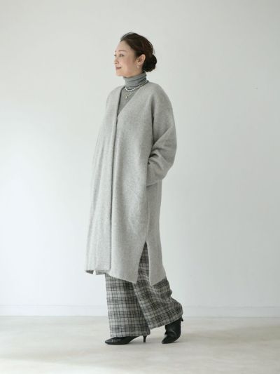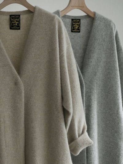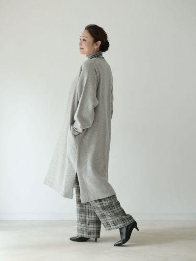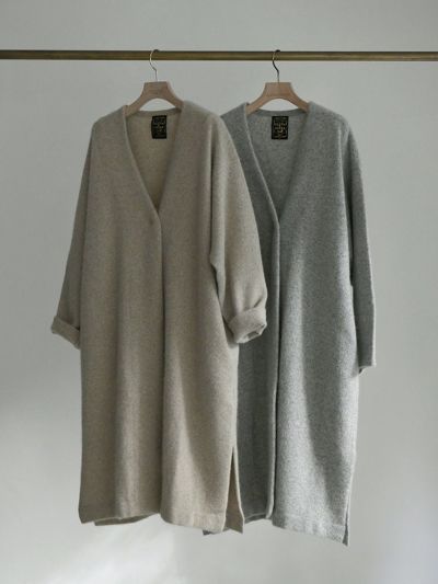 軽くあたたかなフォックスにウールを掛け合わせたオリジナルの糸を使用して、体を優しく包み込んでくれるロング丈のデザインに。