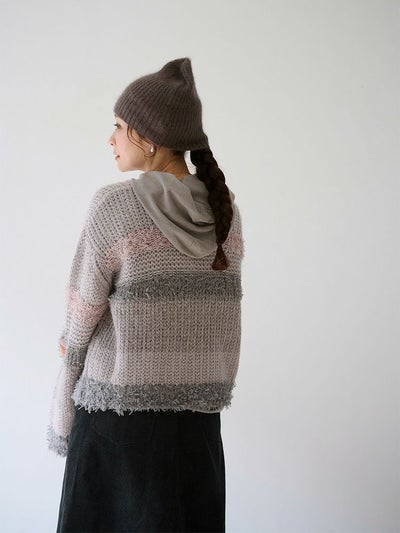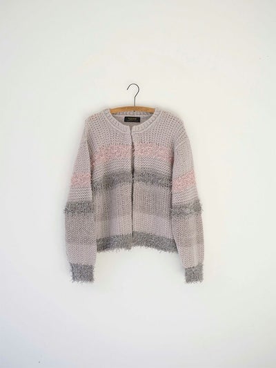 異素材の巧みな組み合わせが織りなす、ニュアンスある表情に心奪われる主役級のニットカーディガン。