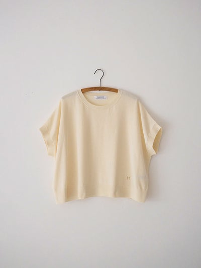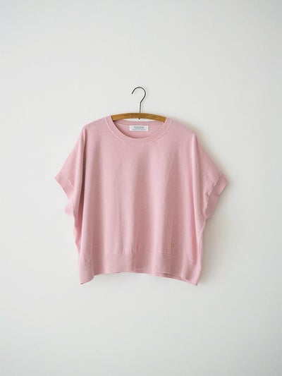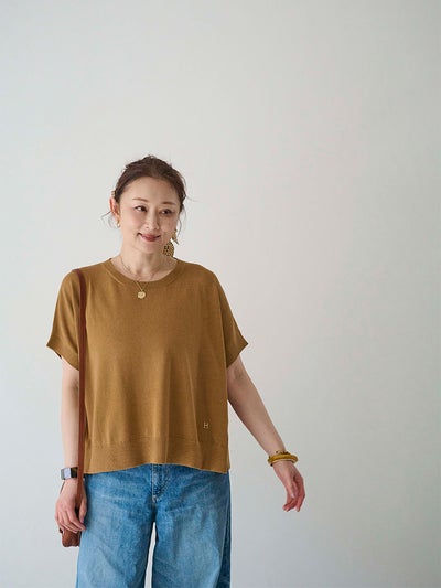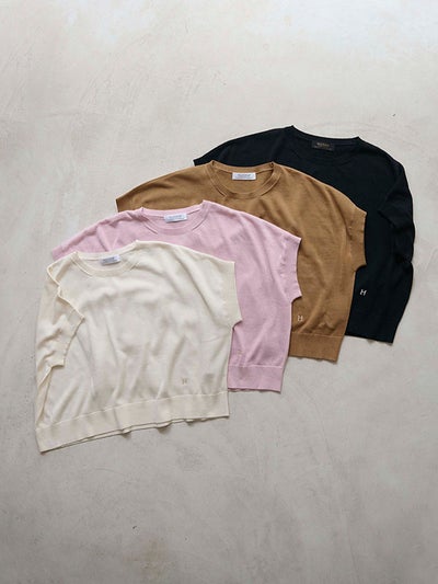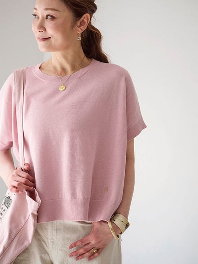 カットソー感覚で着られる、シンプルなハーフスリーブのニットプルオーバー。