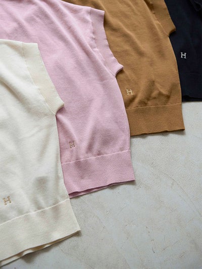 裾にはキラキラと輝く糸でブランドのイニシャル“H”の刺繍を施して、大人のワードローブにフィットする4色展開に仕上げました。