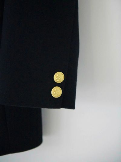 使い込むほどに表情の変化を楽しめる真鍮素材の金ボタンには、デザイナー雅姫の愛犬、ヴォルスとこぐまのモチーフをフロントに。
