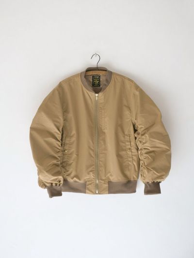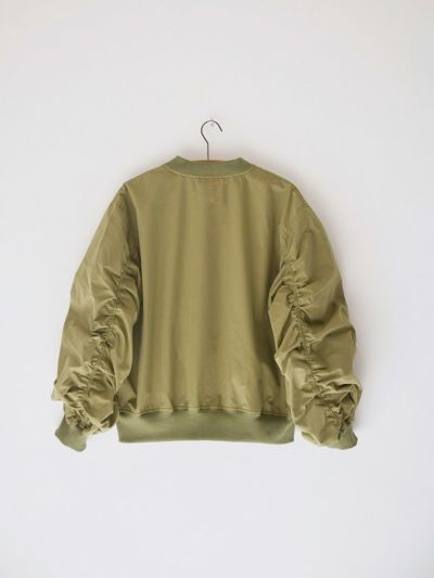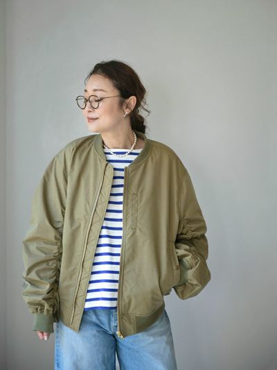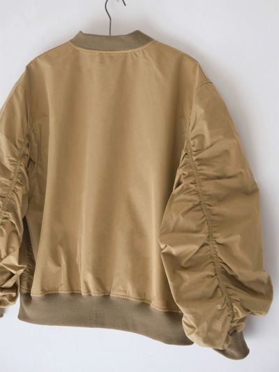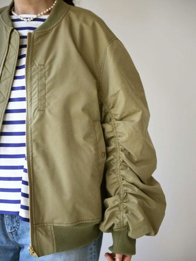 個性的なパッカリングスリーブが目を惹く、ライトな春のフライトジャケット。