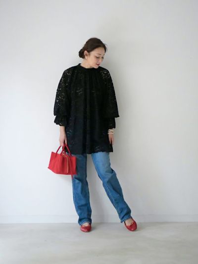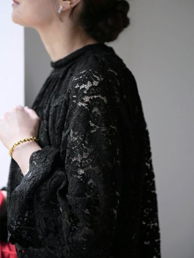 繊細なボタニカル柄レースを贅沢に使用した、気品あふれるエレガントなブラウス。
