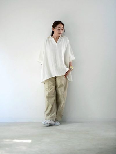 温かみあるリネンの表情が、これからの季節にぴったりなスキッパーブラウス。