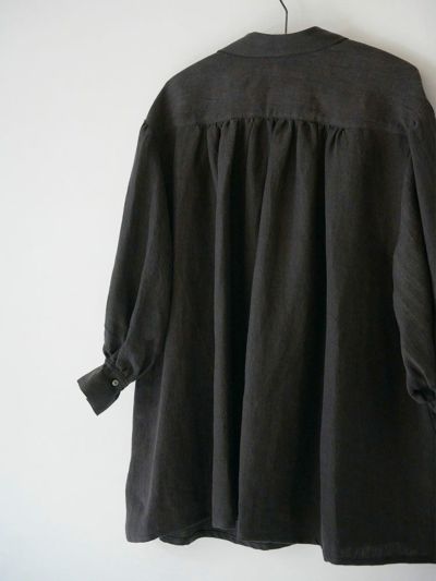 カフス見えする袖口や背中のギャザー使いなど、細部にまで拘った一枚です。