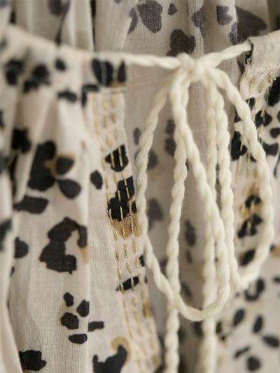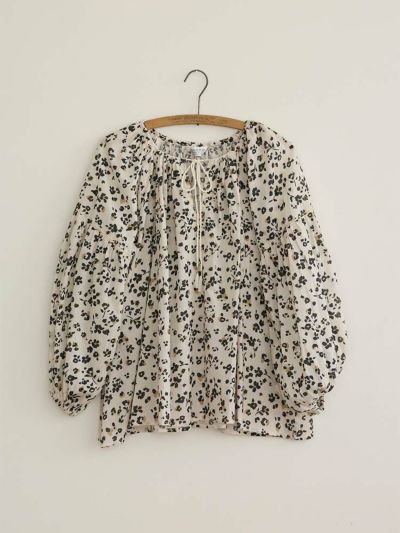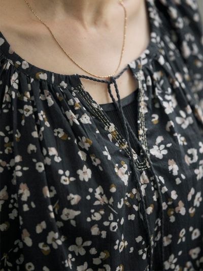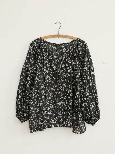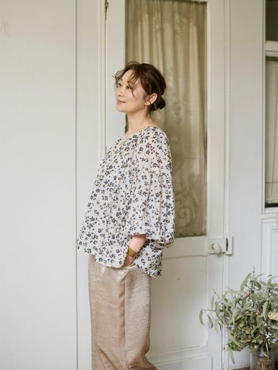 オリジナルで描いたシンプルなタッチの花々を、インドならではの柔らかなコットンボイル生地に写したペザントブラウス。