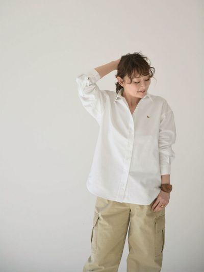メンズライクなオックスシャツも、トイプードルのワンポイント刺繍で遊び心をプラスして。