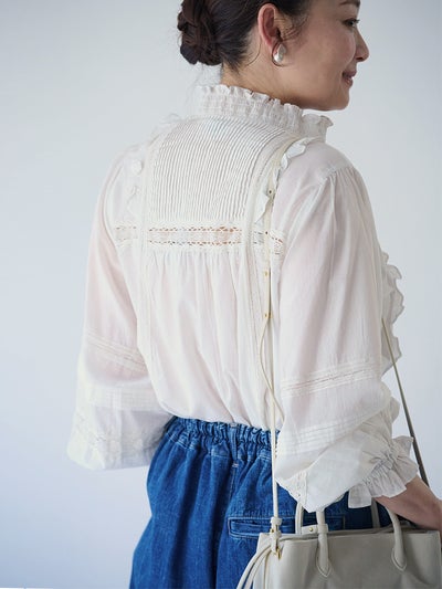 ロマンティックな空気を纏う、気品あふれるヴィクトリア調のブラウス。